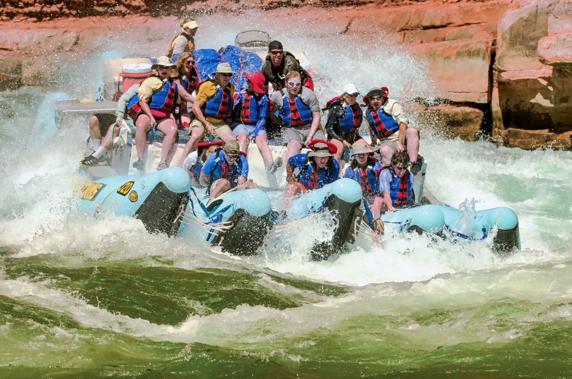 As you'll be rafting down the Grand Canyon for nearly 200 miles, the raft you ride becomes an integral part of your experience in terms of relaxation, whitewater, and ability to move about. While you'll certainly be getting on and off the raft quite a bit every day, your comfort on the raft is important. Western River Expeditions uses a patented raft called the "J-Rig." This raft offers one of the most comfortable rides on a Grand Canyon whitewater rafting trip. You'll find plenty of space to stretch out and relax in the calm sections of the river and one of the most exciting rides in the whitewater stretches. With plenty of seat positions to choose from, you can decide whether you'll ride up front for more action or further back for a calmer experience.
